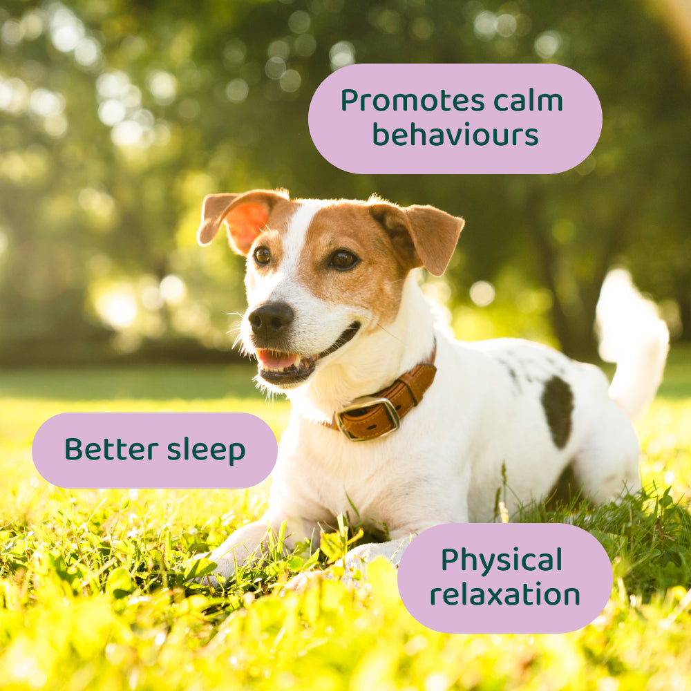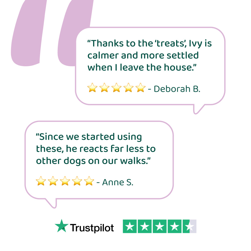 Note: This does not replace medical advice from a veterinarian or canine behaviourist. Anxiety & Stress Relief supplement contains 100% natural ingredients, specially developed to help dogs relax without side effects.