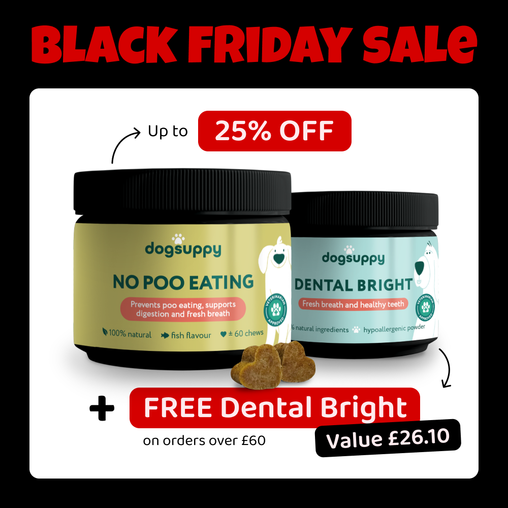 - Yucca extract: tackles the behaviour by changing the smell and makeup of the poo, making it less tempting for your dog