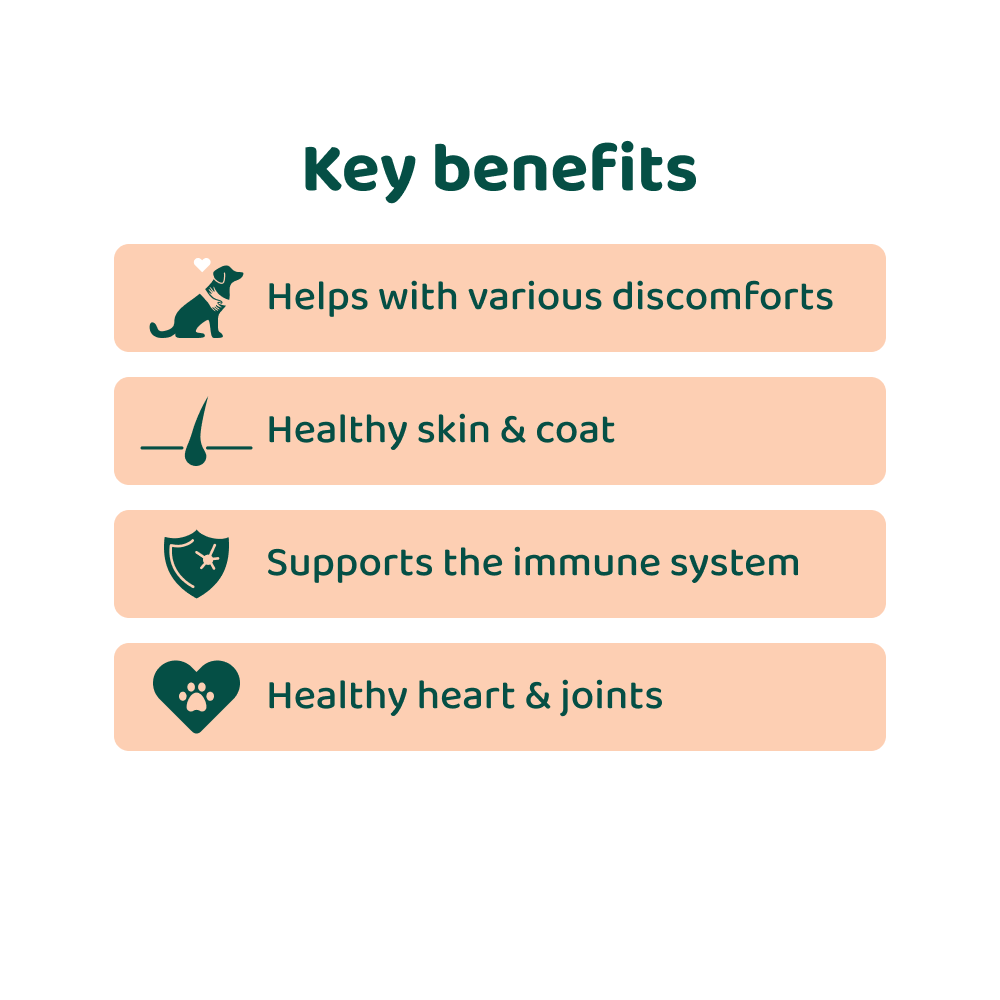- The soothing properties of omega-3 fatty acids aid mobility and support joint health